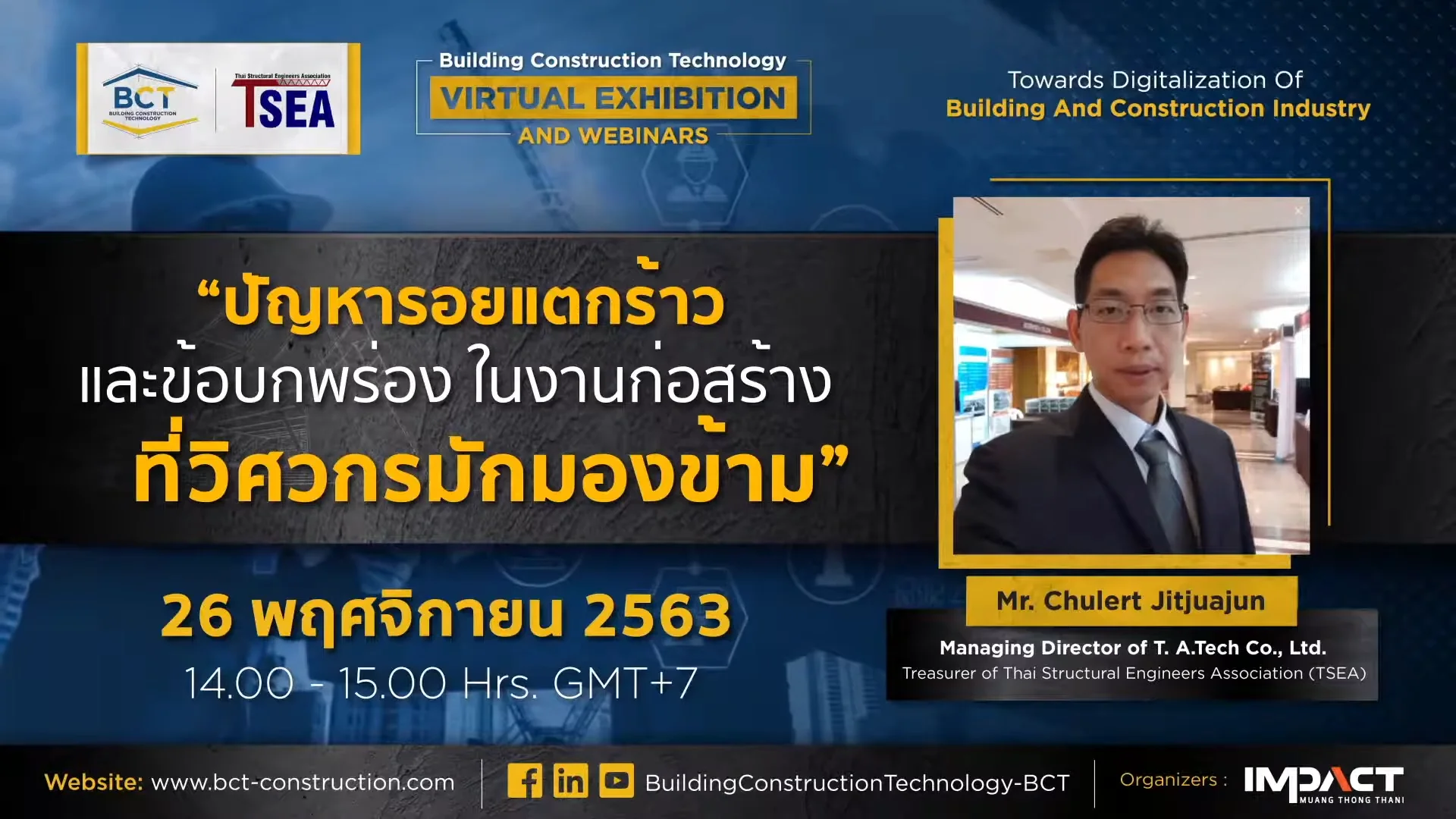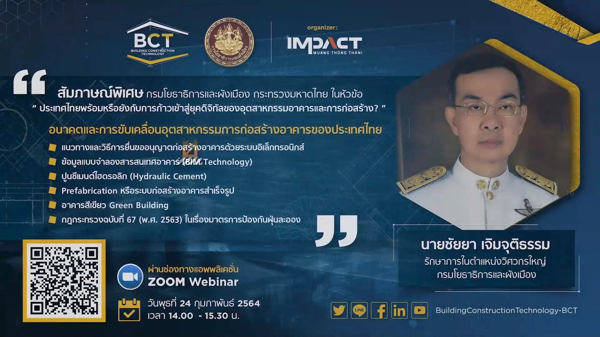 สัมมนาออนไลน์ หัวข้อ : ยกระดับวงการก่อสร้างด้วยแนวคิด“วัสดุอัจฉริยะ” อนาคตมาตรฐานอาคารสมัยใหม่Advancing green building with smart material19 มิถุนายน 2567 เวลา 14:00 – 15:30 น.