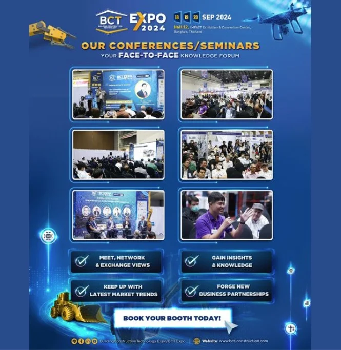 งานแสดงสินค้าเจรจาธุรกิจอุตสาหกรรมอาคารและการก่อสร้าง (BCT Expo 2024) มาพร้อมกับการประชุมและสัมมนาที่น่าสนใจ ที่จะช่วยให้คุณ